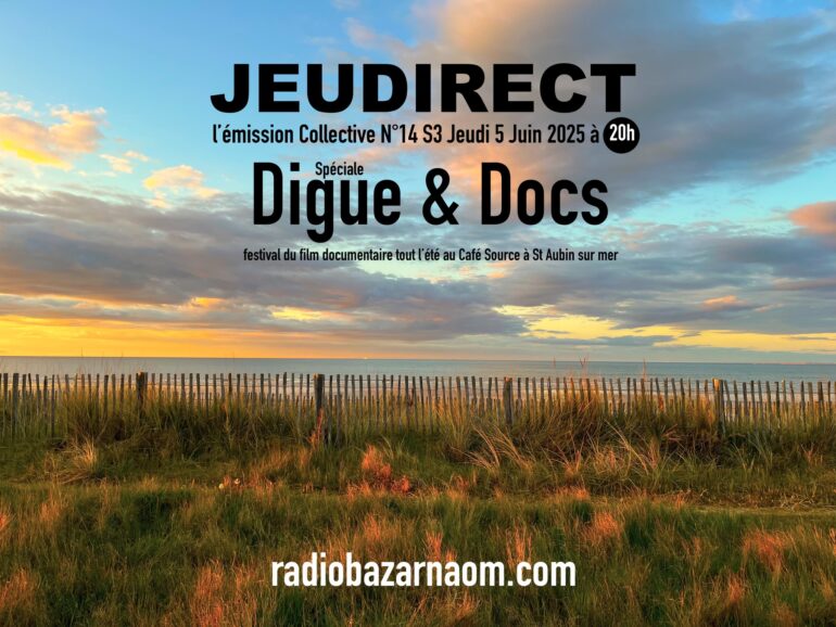 Émission du Jeudi 5 Juin 2025 Inviteés: Lucie, Chantal et Isabelle, Les trois co-organisatrices d’un nouveau festival du film documentaire, tout l’été au Café Source, un bar pas comme les autres tenu depuis quatre ans par Lucie sur la digue…